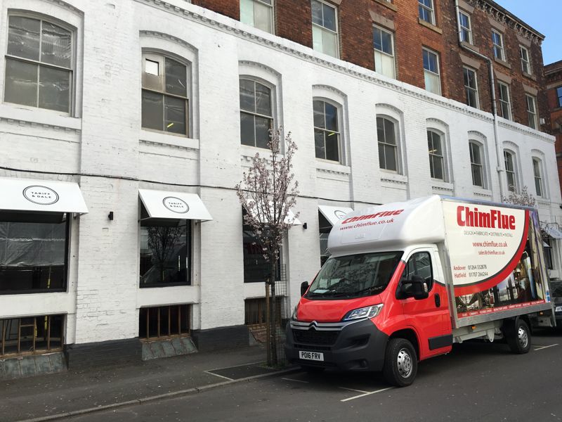Chimflue team with the new van, at the gorgeous Tariff & Dale in Manchester’s ‪‎northern quarter …and the pizza oven is working in time for the weekend!